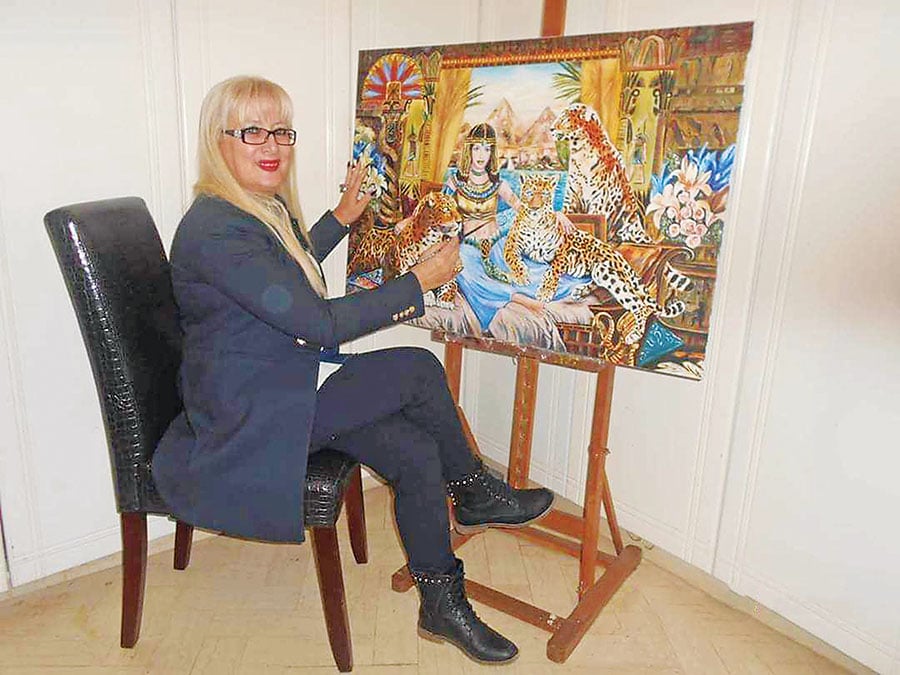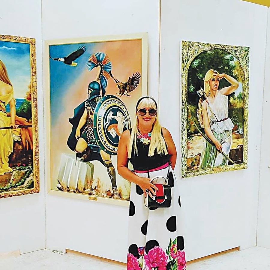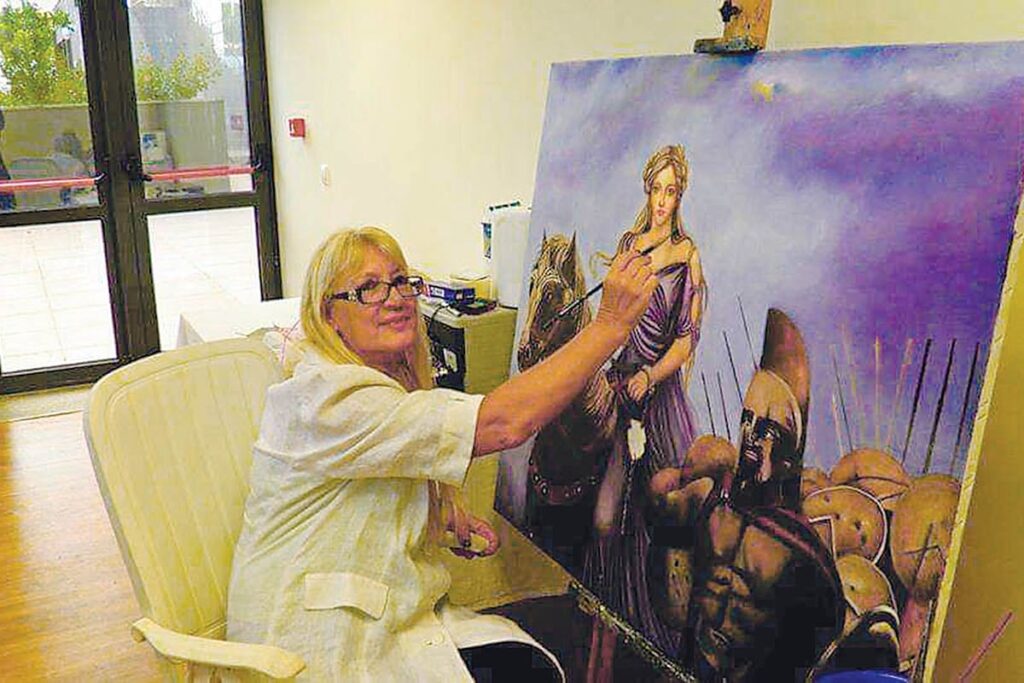 Η Ρίτσα Ανδριανού μπροστά από έναν πίνακά της