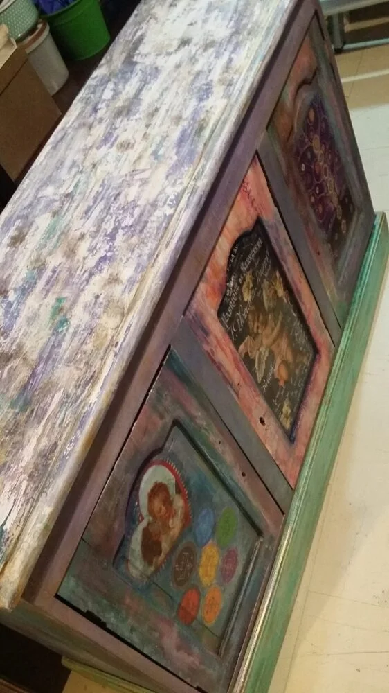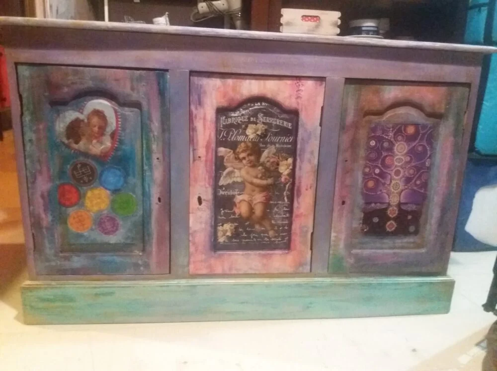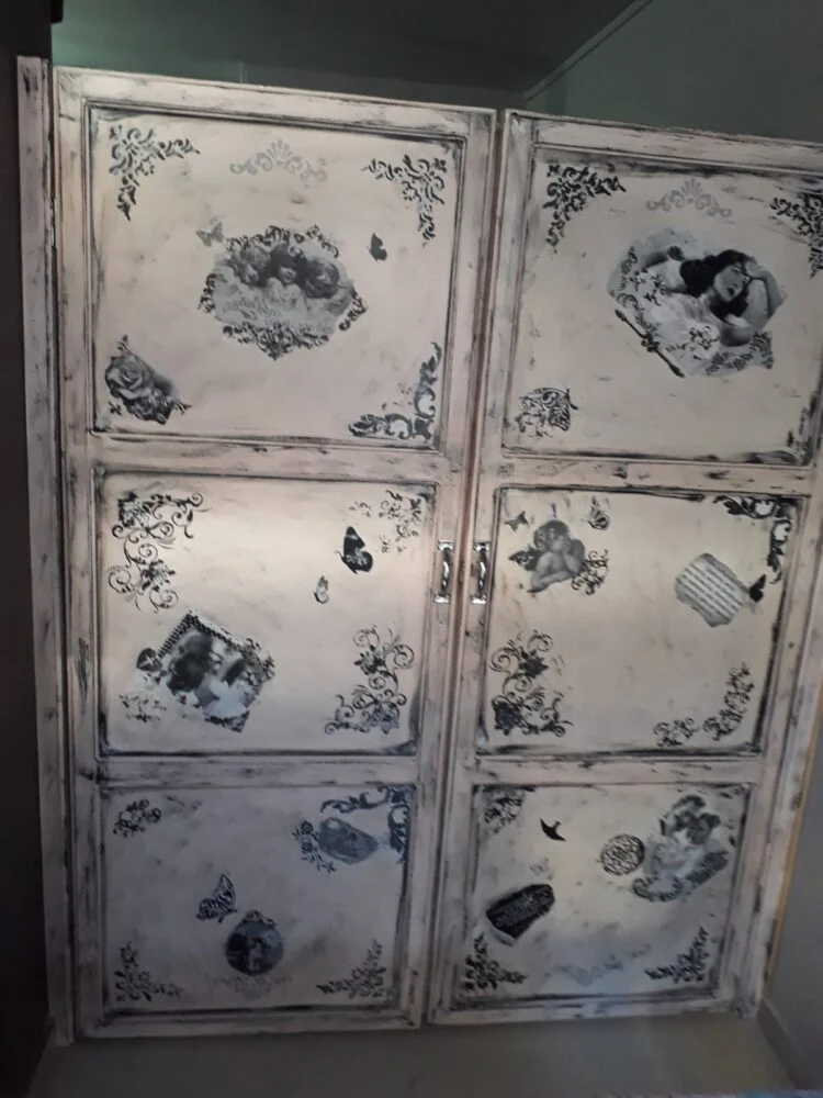 Και δε σταμάτησα εκεί, ήταν να μην πάρω φόρα, έφτιαξα ότι φτιαχνόταν, ψυγεία, πόρτες, ντουλάπια, παραβάν, εικόνες, κάδρα, λαμπατέρ, βαζάκια, φωτιστικά και η γκάμα των χειροτεχνιών μου πια είναι ατελείωτη.