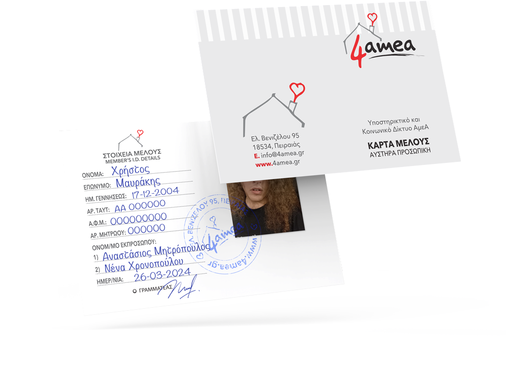 Το ίδιο ακριβώς συμβαίνει και σε όλα τα “ωφελούμενα μέλη” της 4amea, εφ’ όσον καταθέσουν τα απαραίτητα δικαιολογητικά που χρειάζονται για γίνει η εγγραφή τους.