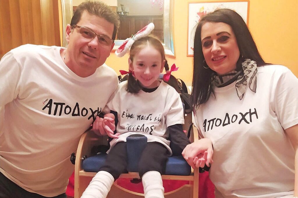 «Είμαστε και εμείς περήφανοι γονείς παιδιού με αναπηρία, είμαστε η Αννα και ο Γιώργος, και ζούμε στην πανέμορφη Βέροια. Εχοντας μεγαλώσει παιδιά τυπικής ανάπτυξης, έχουμε την τύχη να μεγαλώνουμε τη Σοφιλένια μας, που είναι επτά ετών, με σοβαρή και δύσκολη αναπηρία. Η αγγελουδένια μας ήρθε στη ζωή μας το 2017 και για επτά μήνες περίπου όλα κυλούσαν ομαλά, μη γνωρίζοντας τι θα ακολουθήσει.