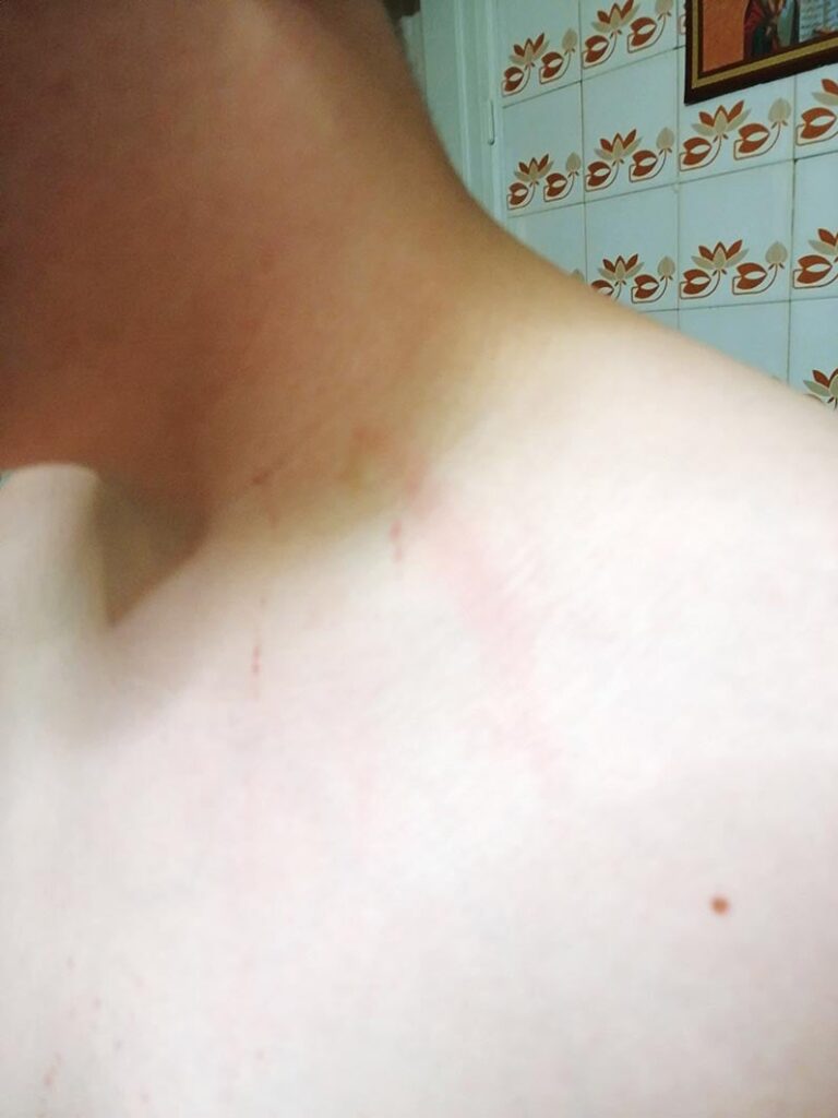 Επειδή, όμως, ο μικρός ήταν σε μεγάλη ένταση θεωρήσαμε ότι έπρεπε να τον αφήσουμε να ηρεμήσει, να τον κάνουμε ένα μπάνιο και να πάμε αύριο, όπως και έγινε. Κάποια στιγμή, οι κυρίες αυτές εμφανίστηκαν στο τηλέφωνο και έκαναν τις ανήξερες. Είπαν σαν δικαιολογία ότι ένα άλλο παιδί έπαθε κρίση και χίμηξε στον γιο μου μέσα στο πούλμαν. Εγώ, βεβαίως, τους απάντησα πως αν συνέβαινε αυτό δεν θα είχε ούτε σκίσιμο στο κούτελο ούτε γρατσουνιές στην πλάτη.